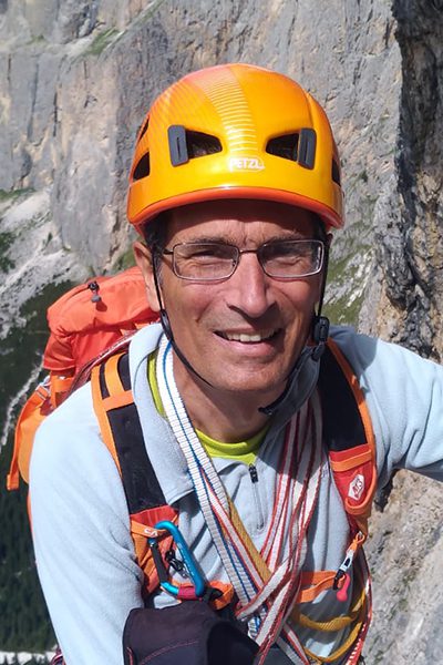 Ha scoperto la montagna intorno ai 35 anni, praticando escursionismo e trail running, per poi frequentarla anche da alpinista.