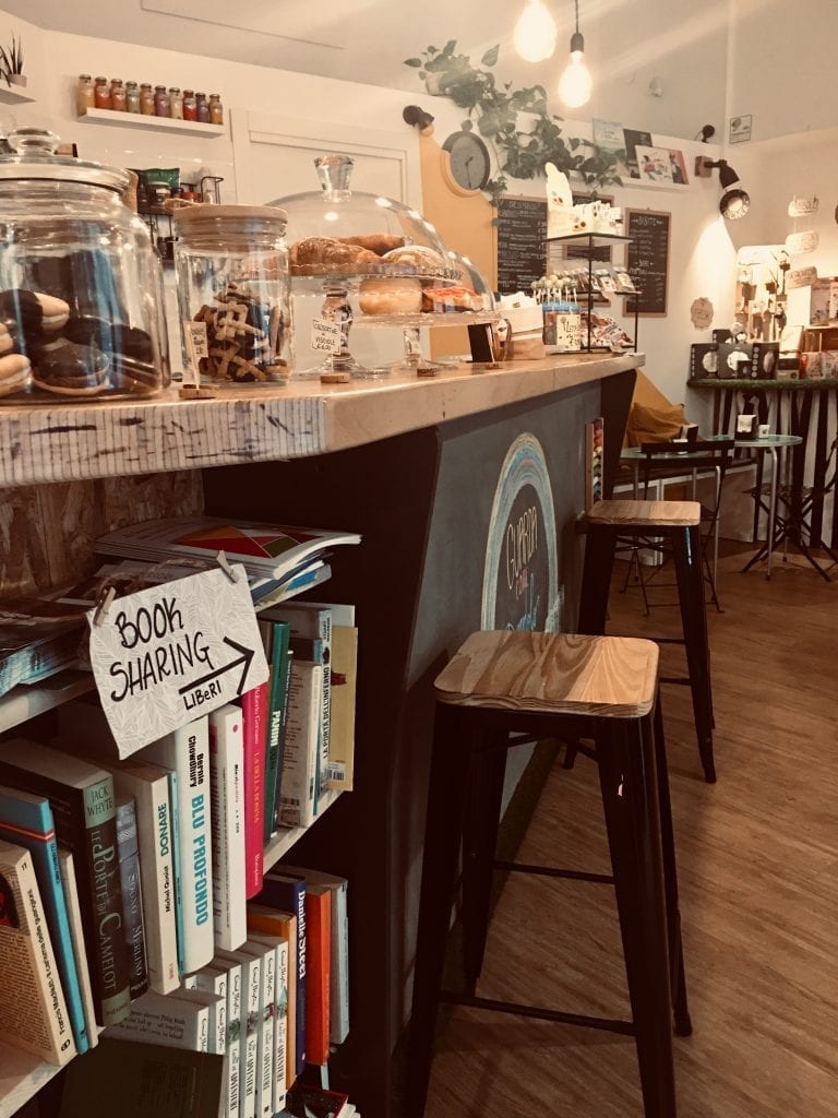È una libreria, ma non solo. È una caffetteria, ma non solo. E non è neppure solo la somma dei due elementi. È un luogo che dall’unione di queste due anime diventa qualcosa di più. Un rifugio per tutti coloro che hanno a cuore la qualità del tempo e condividono con noi la passione per la lettura, la cultura e le cose belle. È un luogo accogliente per chi ha voglia di rilassarsi sfogliando un libro di fronte ad un caffè, un tè caldo, un bicchiere di vino o fare merenda con prodotti sani e ricercati. È uno spazio aperto alla socializzazione e alla condivisione di esperienze ed idee. È uno spazio in cui è possibile, prima di tutto, vivere i libri e tutte le loro storie.