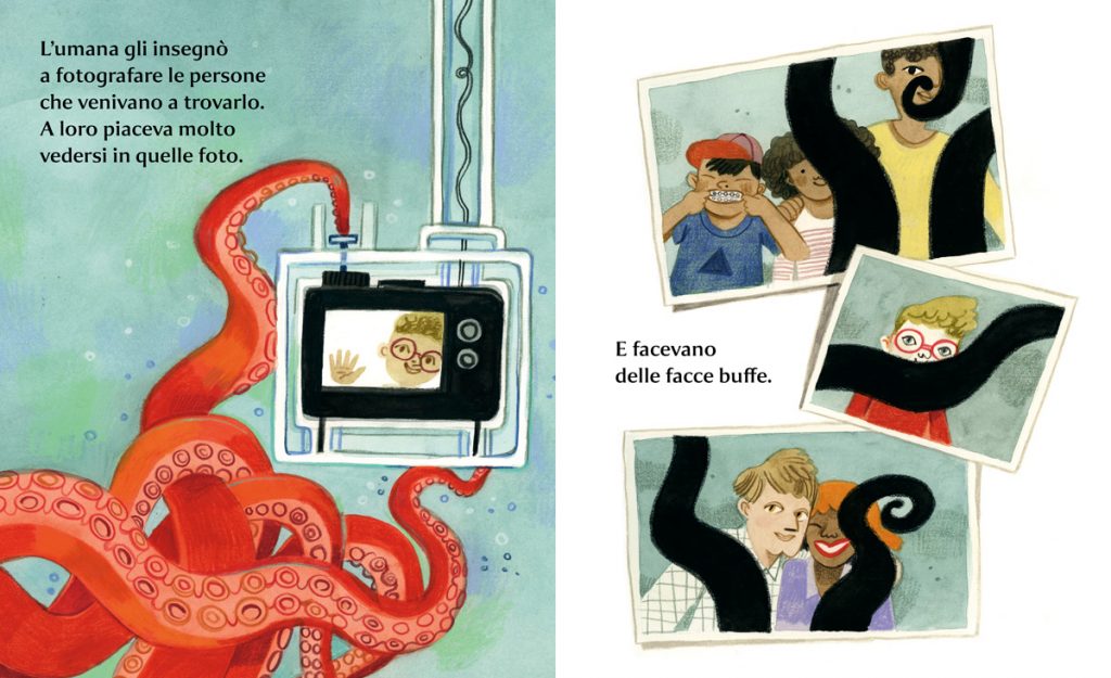 Principalmente, ai bambini e le bambine dai 3 agli 8 anni. Credo che in quella fascia di età sia presente una fascinazione per tutto ciò che riguarda il regno animale, e in particolare il mondo sottomarino. Ma il libro può’ essere letto da chiunque abbia un particolare interesse per i polpi!