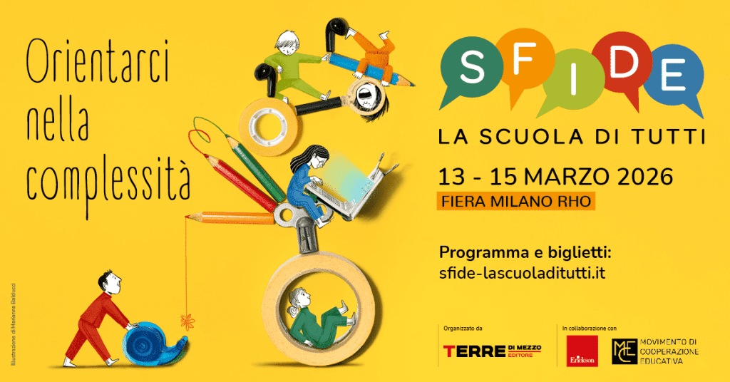 Progettiamo Sfide insieme a Erickson, editore da sempre impegnato ad aprire nuovi sguardi in ambito educativo, e insieme alla storica associazione di insegnanti Movimento di Cooperazione Educativa, con lo stesso spirito collaborativo e pluralistico con cui scegliamo i libri.
