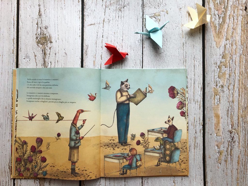 Ancora un anno e poi anche mia figlia, Caterina, farà il suo ingresso alla scuola dell’infanzia. Conservo questo albo sul suo scaffale perché possa ritrovarlo come un messaggio beneaugurante – il più bello, forse che si possa ricevere: quello di incontrare, nel suo cammino, compagni con cui poter “scambiare idee, merende e qualche abbraccio”, e insegnanti che aiutino a coltivare i talenti, per poter fare ciò che si sogna e essere ciò che più si desidera.