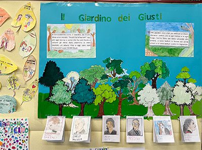 Il 20 gennaio è stato letto l’albo in tutto il plesso e ciascuna classe ha costruito una parte del giardino: chi ha lavorato ai semi, chi ai fiori, chi alle foglie. I più grandi hanno tratto spunto da una nozione di storia, rievocando il giardino costruito nel 1962 a Gerusalemme dove, per ogni “Giusto tra le Nazioni”- cioè per ogni persona non ebrea che durante la Seconda Guerra Mondiale ha salvato chi era destinato ai campi di sterminio – è stato piantato un albero. La riflessione aveva anche l’obiettivo di chiedersi se questo giardino oggi, con la situazione attuale del nostro Pianeta, ha ancora la forza di ricordare all’umanità come si comportano i “Giusti”.