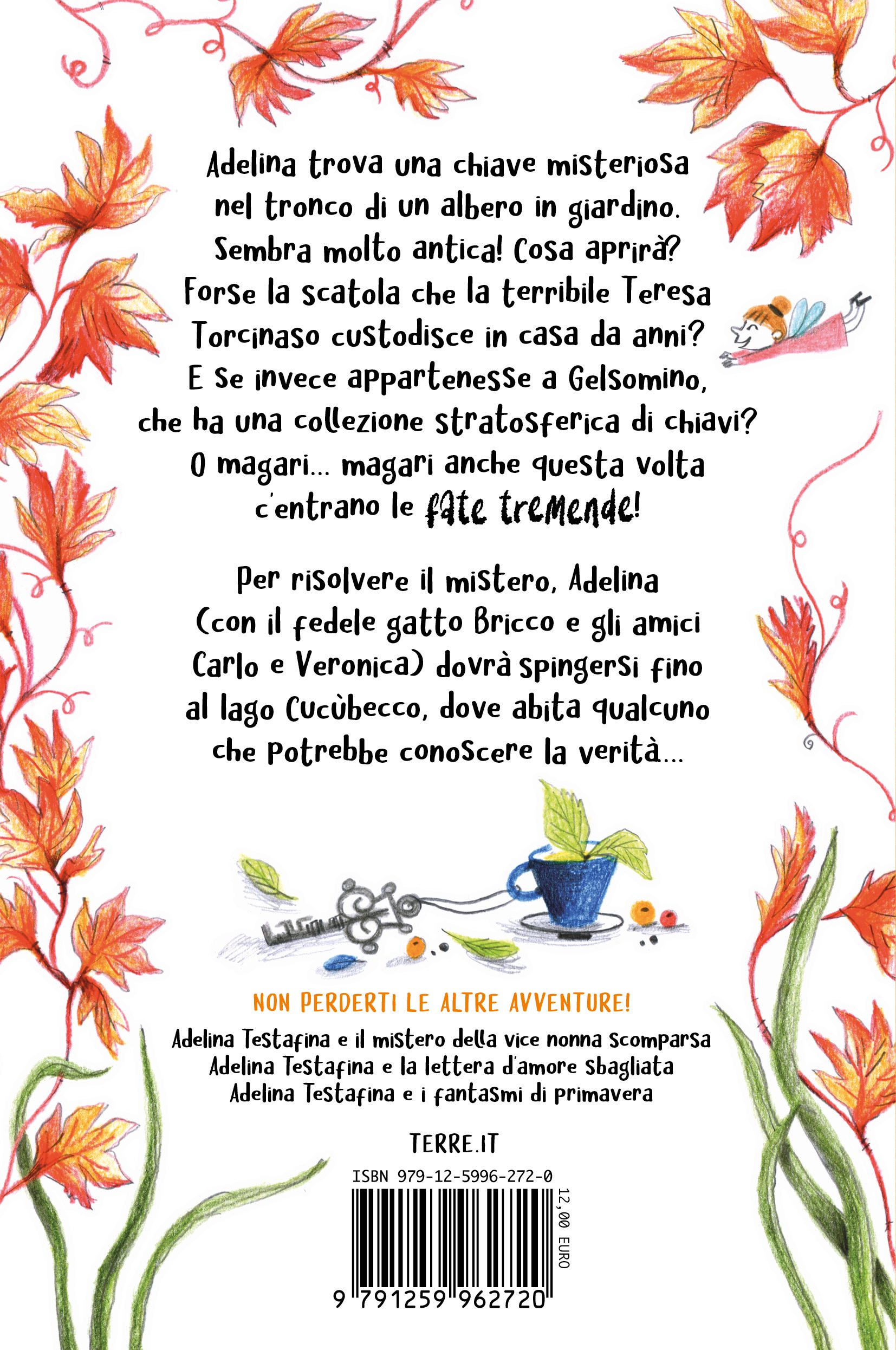 Adelina Testafina trova una misteriosa chiave nascosta nel tronco di un albero in giardino e ha davvero un aspetto molto antico… chissà cosa potrebbe mai aprire! Forse la scatola che la terribile Teresa Torcinaso custodisce in casa da anni? O forse appartiene a Gelsomino, che ha una mega collezione di chiavi? O magari… magari anche questa volta c’entrano le fate tremende!