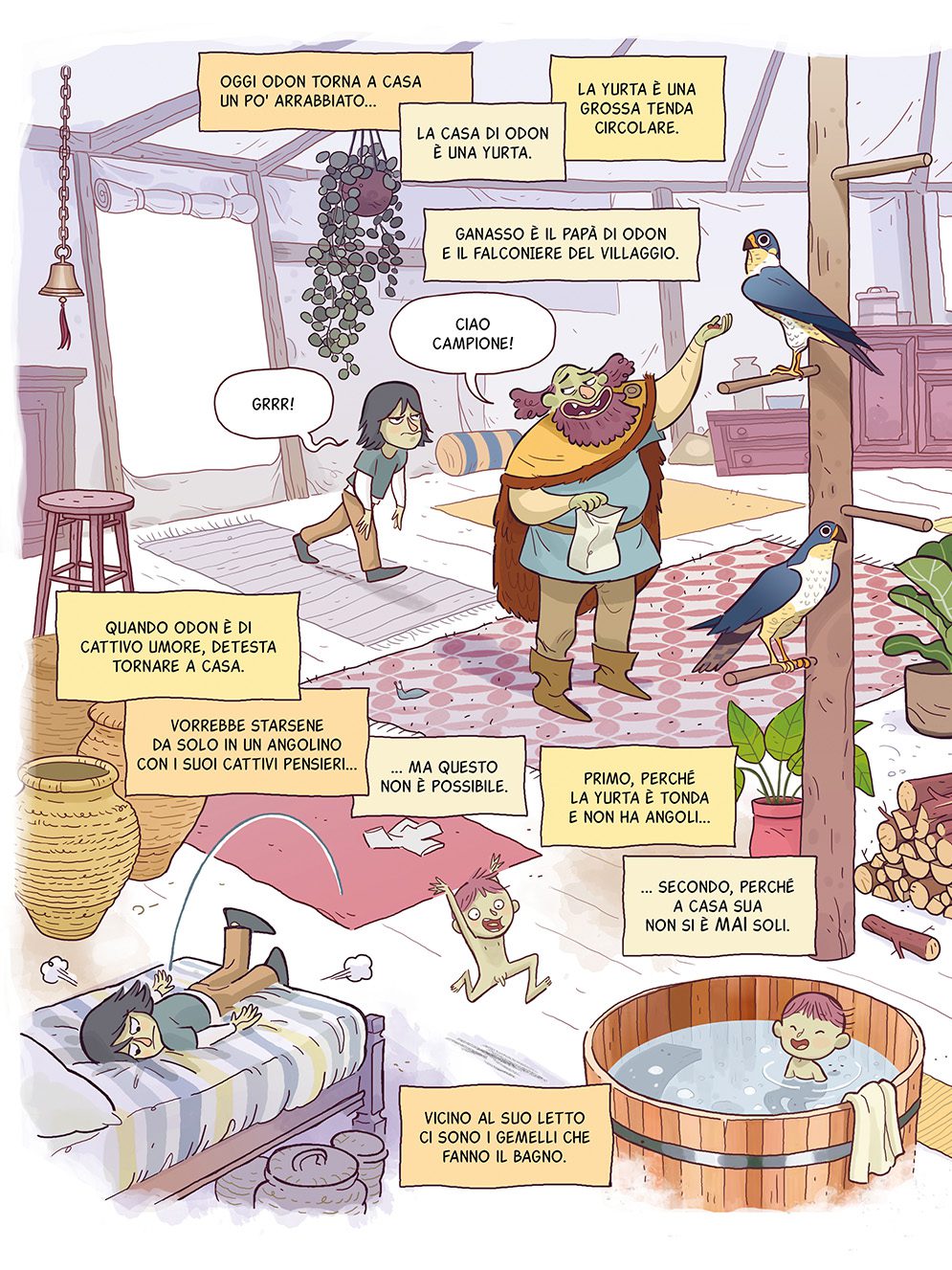Nel lontano villaggio di Meltinpotto, Cociacchi e Tatarri convivono da tempo, nonostante un’etnia sia sedentaria e amante degli orsi, e la seconda viva in yurte piene di falchi. Tutto però cambia quando due ragazzini, Olmo e Odon, litigano per una partita di palla-pantano. Gli adulti si intromettono e avviene il disastro: Cociacchi e Tatarri devono separarsi, una nuova guerra ha inizio! Olmo e Odon prendono così due strade diverse, per poi scoprire lontane città, eroi leggendari e soprattutto un nuovo senso di giustizia che tornerà a unirli.
