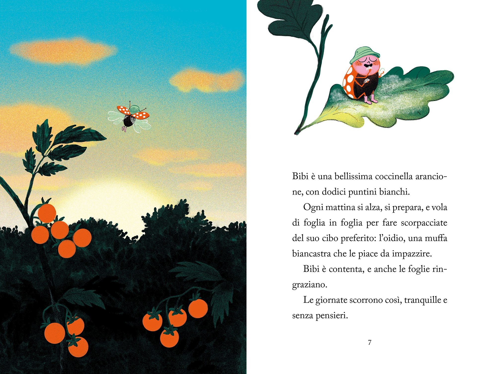 Bibi è una graziosa coccinella con dodici puntini bianchi sulla schiena.