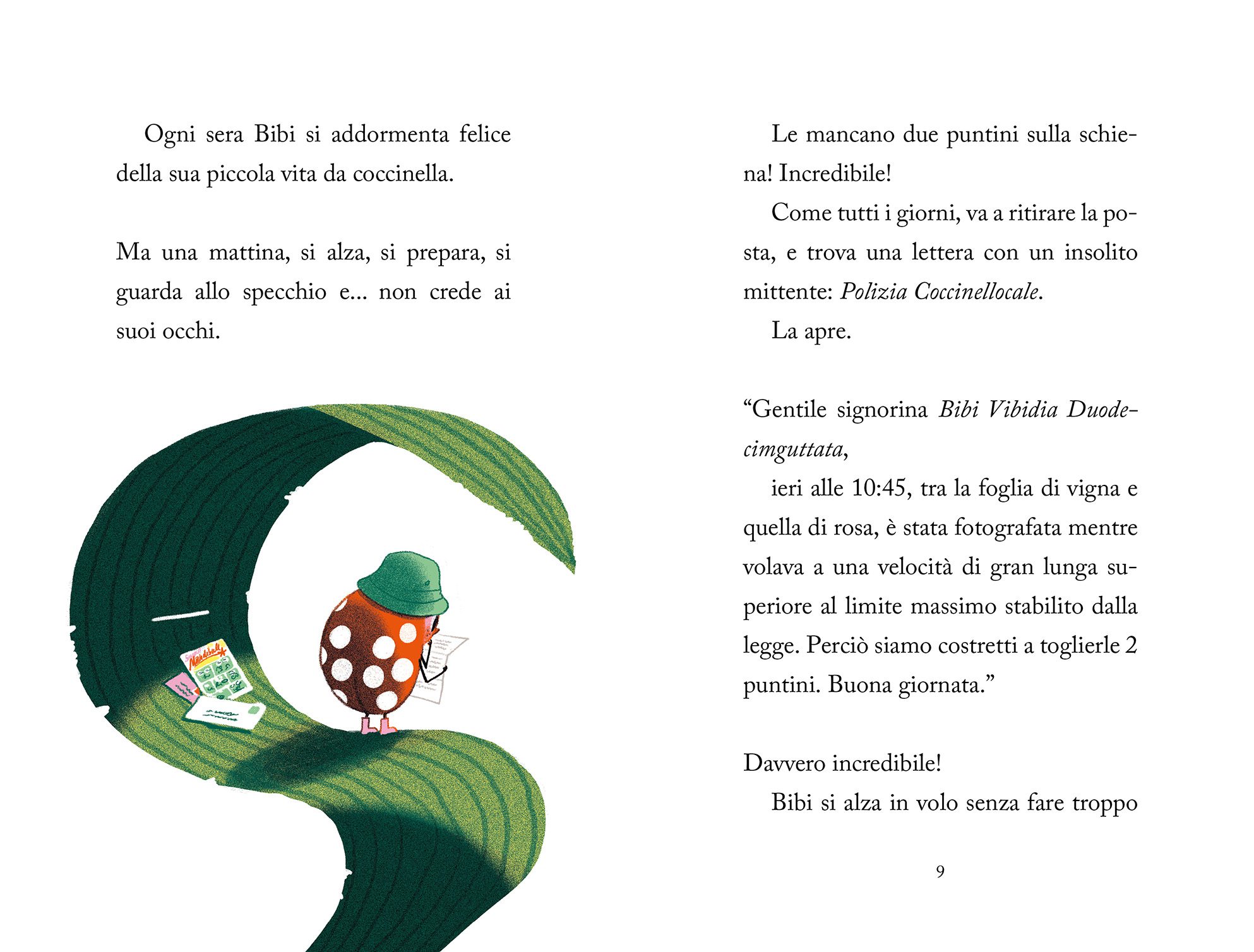 Un giorno riceve una lettera inaspettata: una multa, dove la si accusa di non aver rispettato il codice della strada! Improvvisamente Bibi ha perso tutti i suoi punti e… non può più volare! Tra maggiolini, millepiedi, coccinelle speciali e altre pericolosissime, Bibi ritroverà i suoi pois bianchi e li amerà come mai prima!