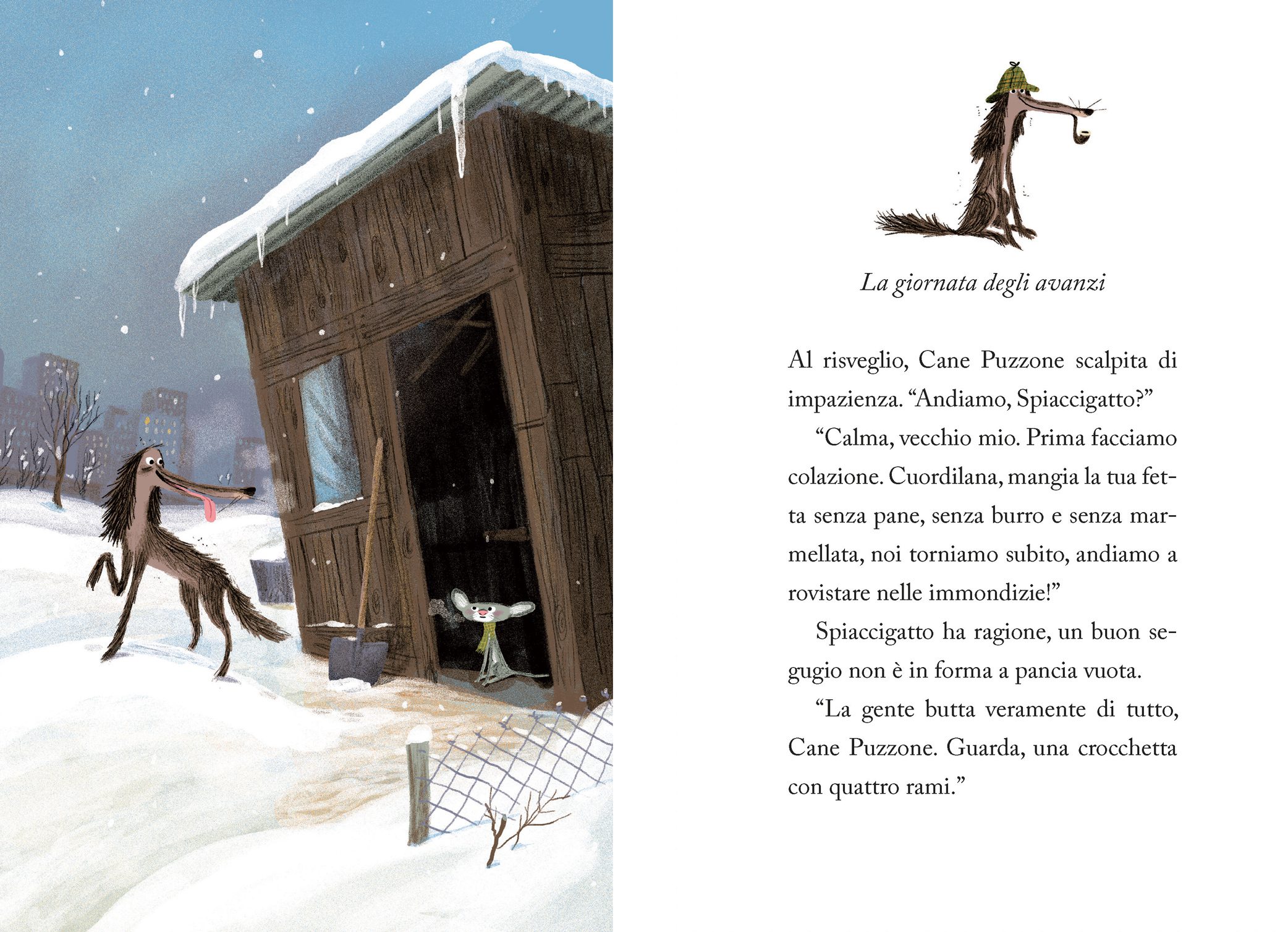 Cane Puzzone e il suo fedele amico Spiaccigatto sperano di trovare una casa che li ospiti almeno per una sera…. Riescono a trovare un “ingaggio” come regalo per un bimbo, che però li trova disgustosi, e così finiscono sulla bancarella del mercatino delle pulci.