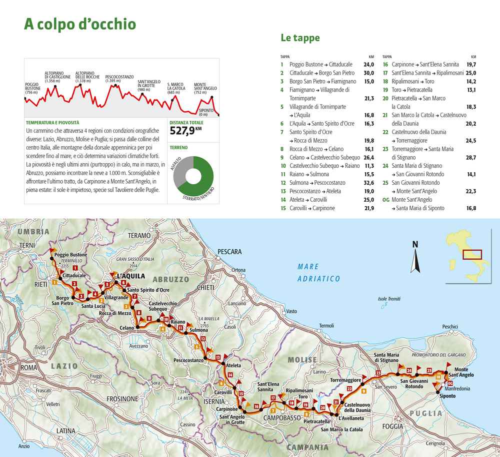 Dal Lazio, dove termina il cammino descritto nella guida Di qui passò Francesco, alle rocce di Monte Sant’Angelo a picco sul Gargano: 500 chilometri verso una delle mete di pellegrinaggio più affascinanti e antiche d’Europa.