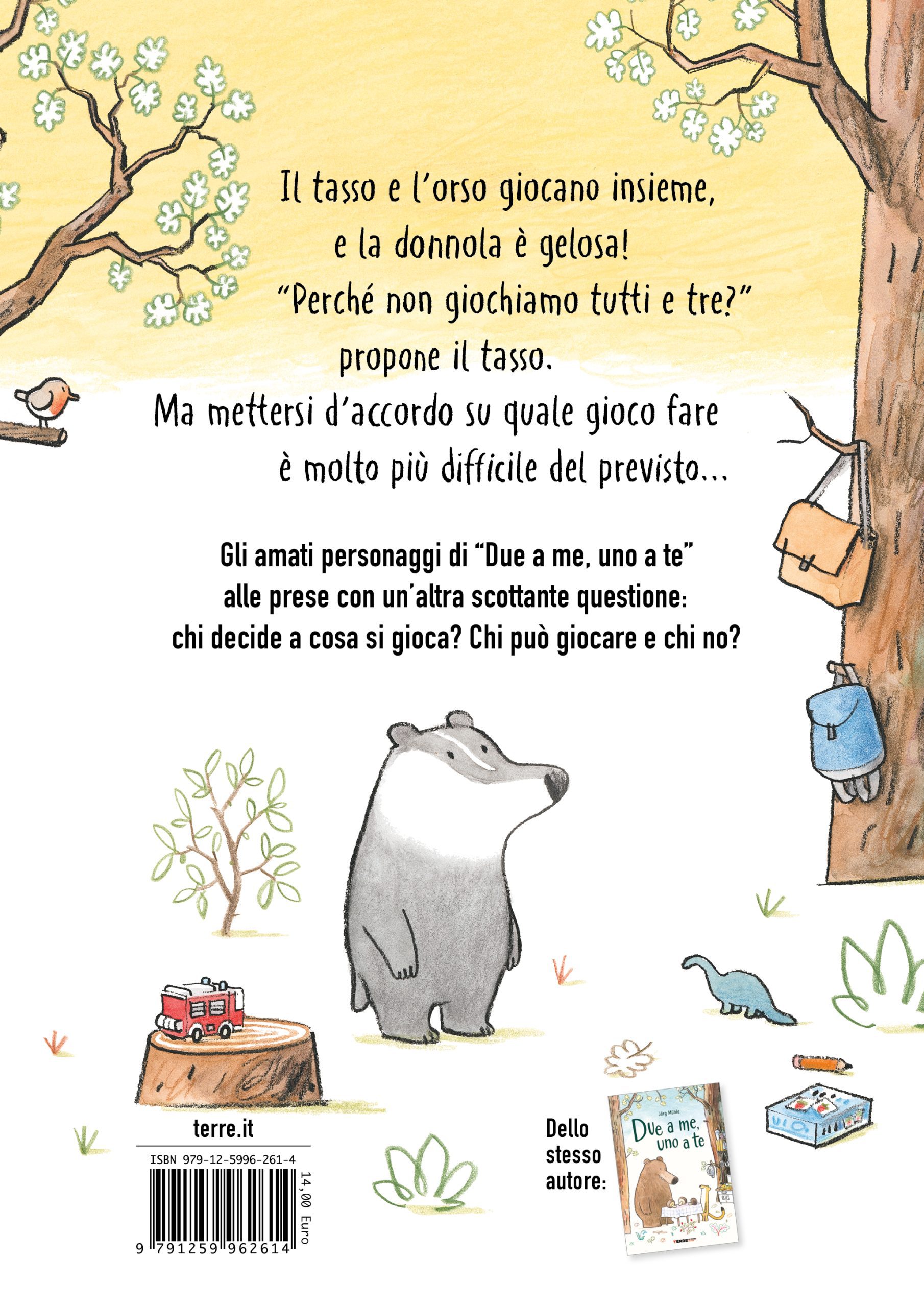 Un nuovo divertente albo di Jörg Mühle, che vede come protagonisti i personaggi di “Due a me, uno a te” con un’altra scottante questione: Chi può giocare e chi no? Chi decide a cosa si gioca?