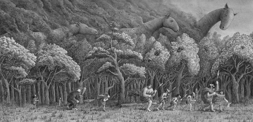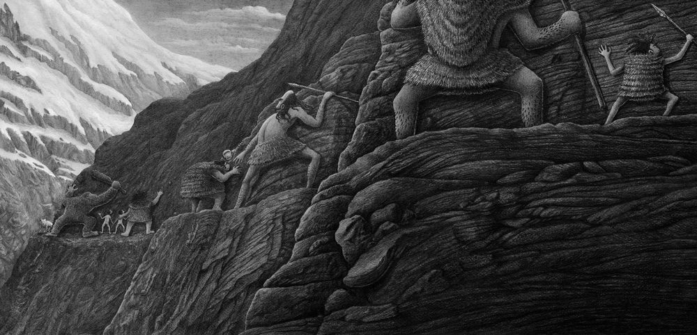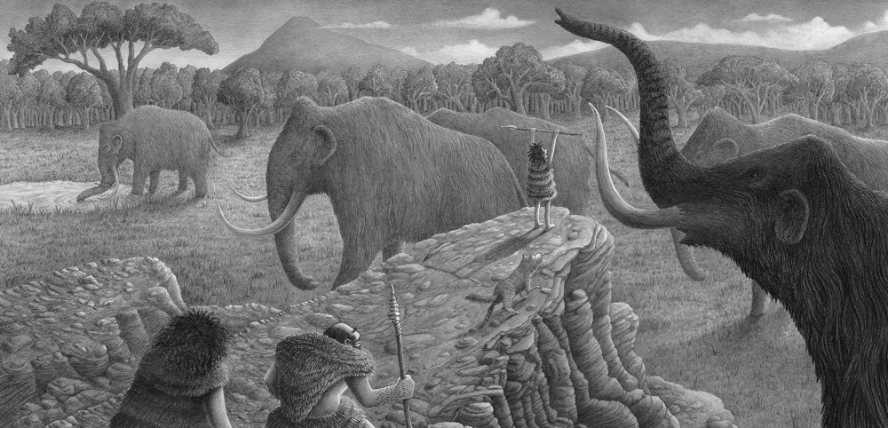 Tra paesaggi grandiosi e animali terribili, bufere di neve e cieli stellati, finalmente ecco una grotta in cui fermarsi per un po’. Chi si riposa, chi accende un falò, chi esce per procacciarsi il cibo…. lei no: la figlia del capo clan inizia a disegnare sulle pareti rocciose quello che ha visto durante la lunga traversata.