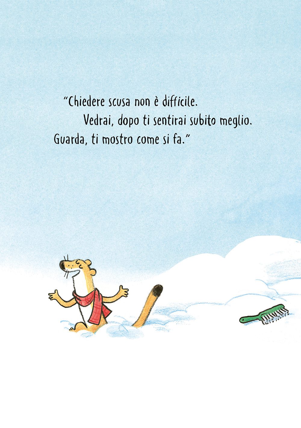 Dopo “Due a me, uno a te” e “Decidi sempre tu”, Mühle mette in scena un’altra questione comune a tutti i bimbi: litigare con gli amici, imparare a scusarsi, riconoscere i propri errori, fare pace.