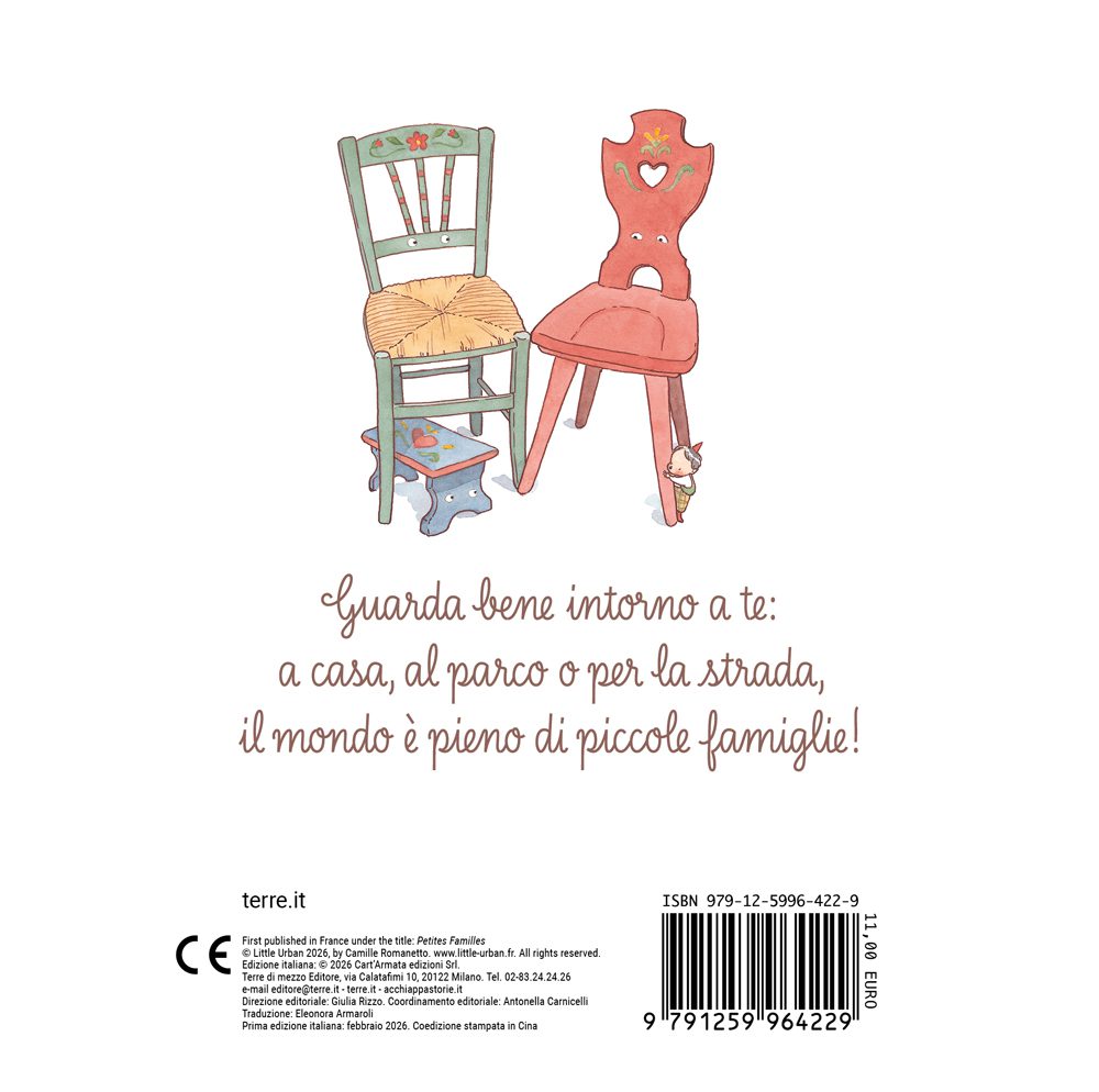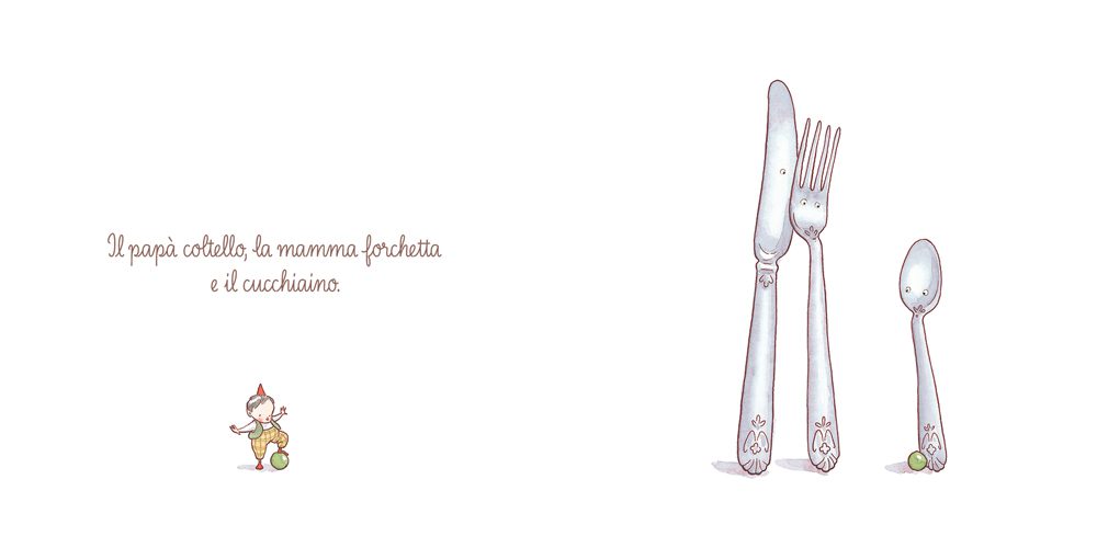 Ci sono papà e mamma Sedia insieme a Sgabellino, mamma Teiera con la sua Tazzina, i papà Libro e il loro Libricino… ogni pagina invita i piccoli lettori a scoprire il mondo che li circonda, e mostra come anche le cose più comuni possano raccontare storie di affetto e cura.