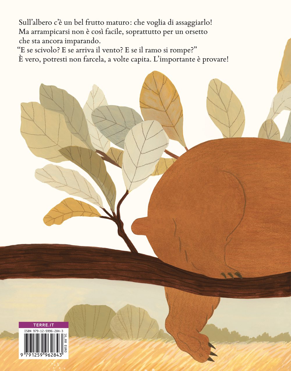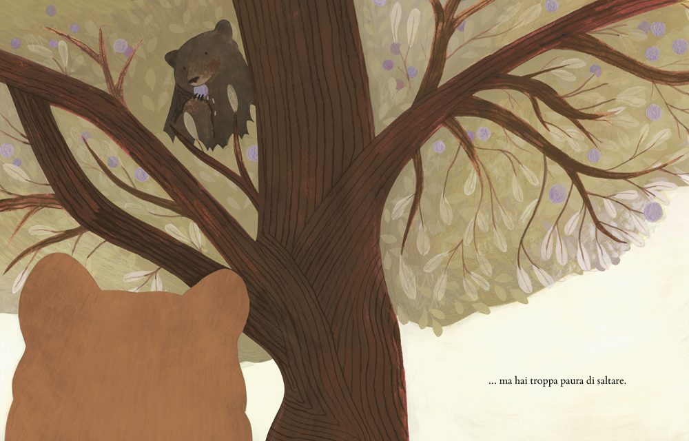 Piccolo orso vorrebbe raggiungere quella ghiotta prugna matura. Ma arrampicarsi su un albero non è così facile, per chi sta ancora imparando: