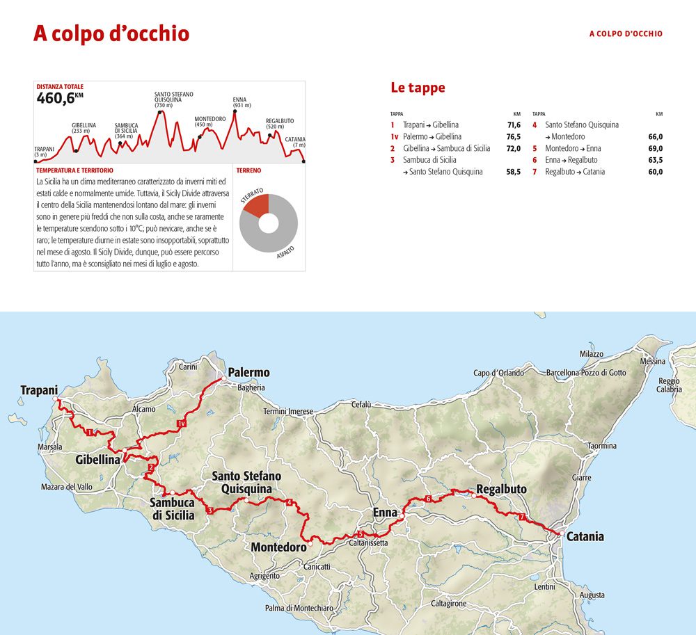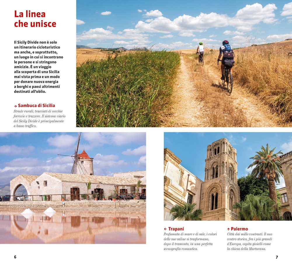 La guida per partire subito: con le tracce Gps, i consigli per l’attrezzatura, l’indicazione dei servizi bike friendly e quelli per il trasporto bici, le mappe, le altimetrie. E otto deviazioni “a portata di pedale” per scoprire i tesori dell’isola, come il tempio di Segesta, o sfidare gli altri ciclisti lungo l’ascesa al rifugio Sapienza, sul vulcano più alto d’Italia.
