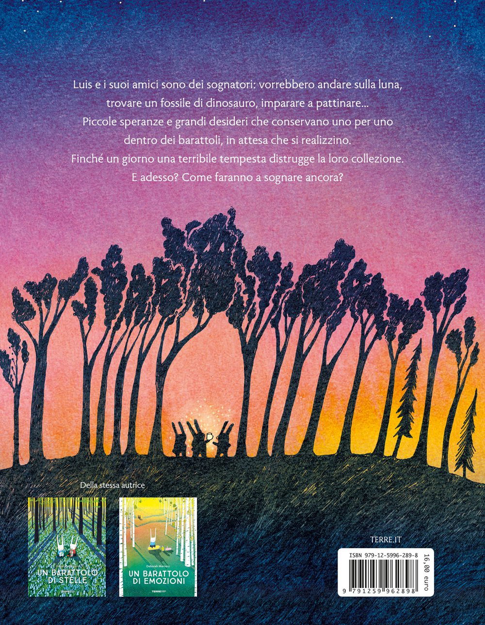 Luis e i suoi amici collezionano sogni. Li mettono in barattoli grandi e piccoli, in attesa di realizzarli. Così ne raccolgono tantissimi: pattinare sul ghiaccio, vedere un bruco che si trasforma in farfalla, recitare, andare sulla Luna. Ma come si fa a sperare ancora, se una tempesta all’improvviso arriva e spazza via tutti i barattoli, con il loro prezioso e vitale contenuto?