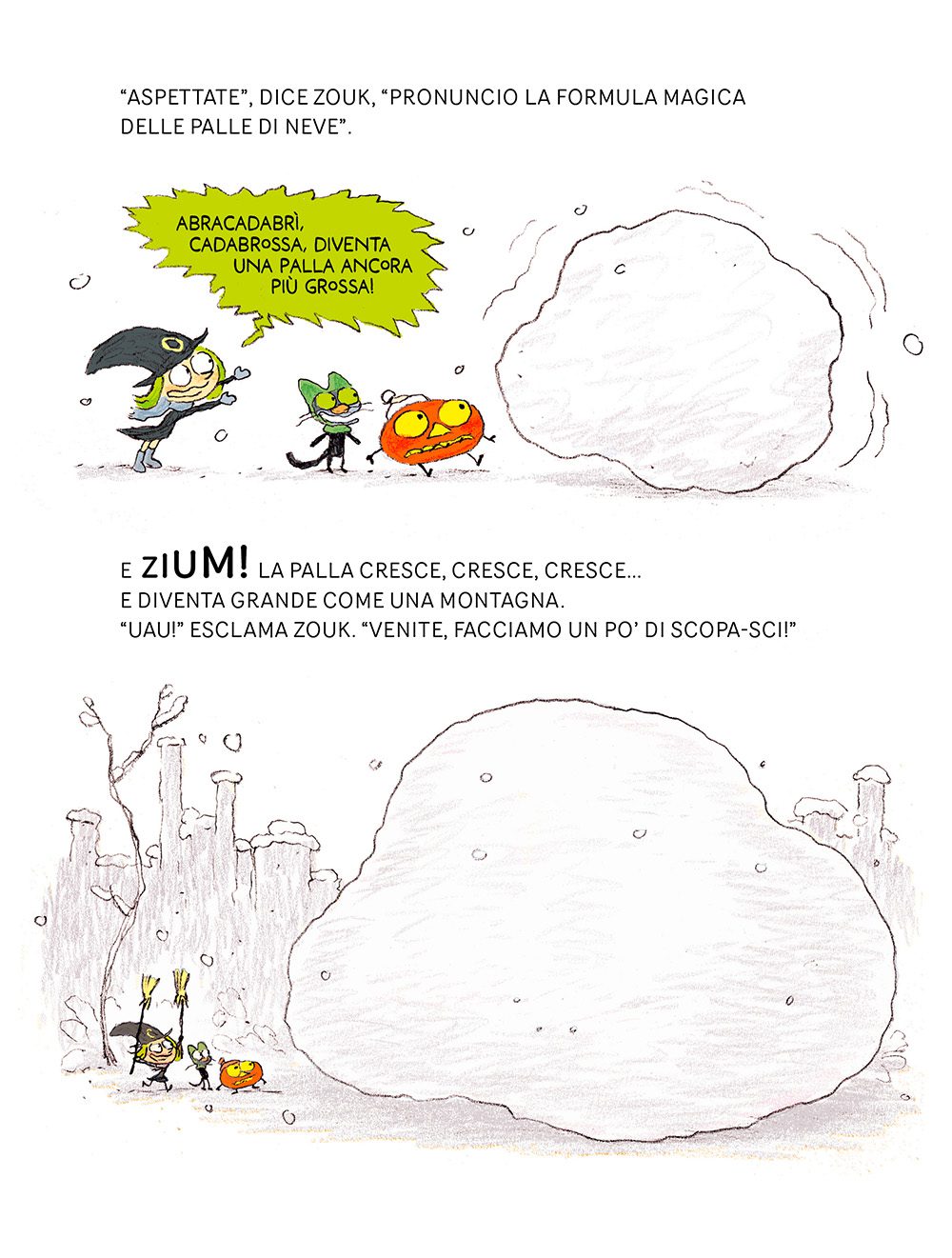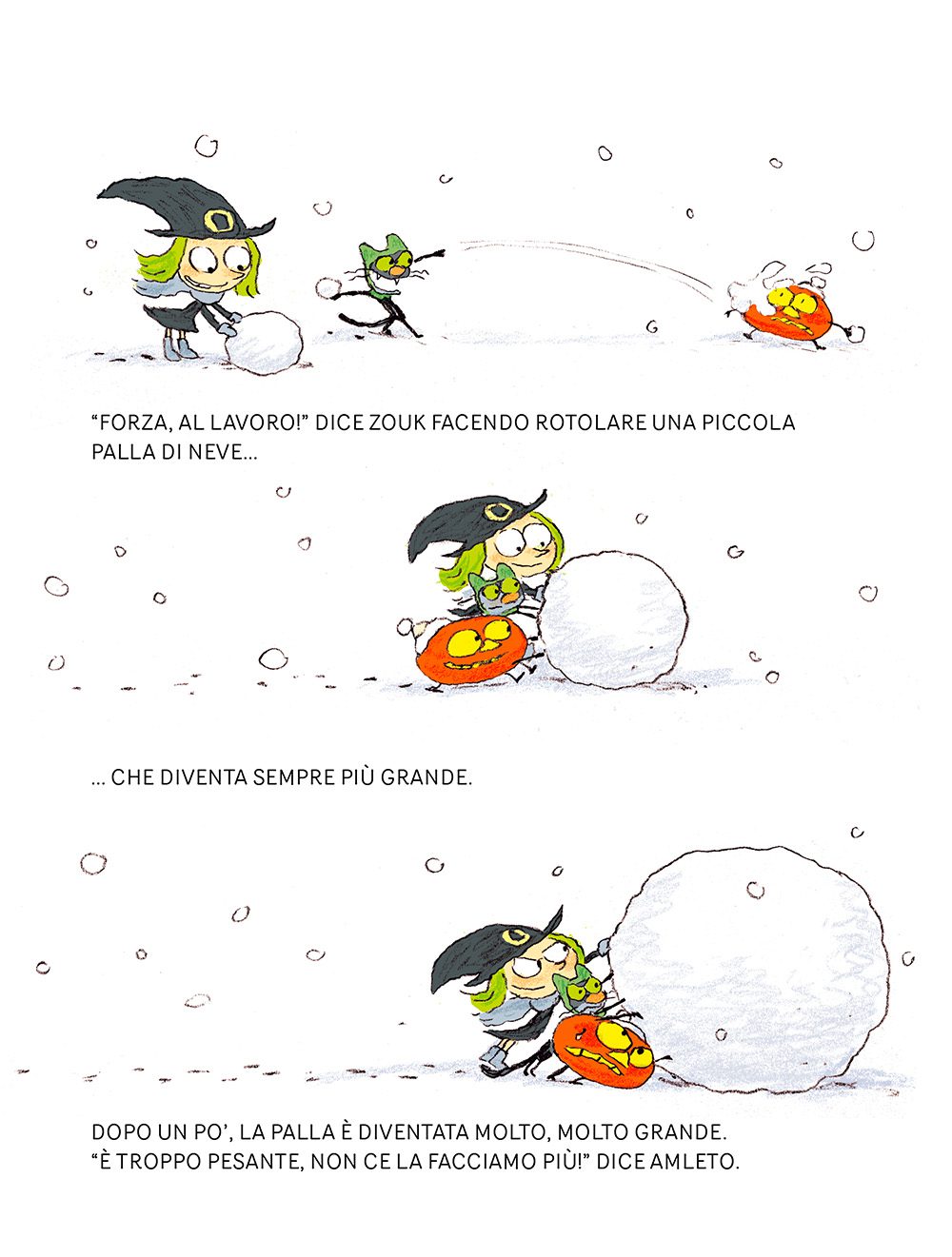 In queste sei nuove, esilaranti avventure, vola superando i limiti di velocità a cavallo della sua scopa, crea un enorme bidone della spazzatura per ripulire la strada… E invoca l’aiuto della migliore strega al mondo, la sua mamma, per sistemare i disastri che combina! Proprio come per tutti i piccoli, cadendo impara a rialzarsi; e cresce, esplorando il mondo al di fuori della famiglia.